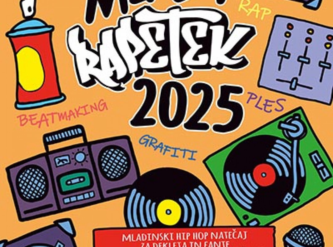 Na letnem vrtu in v dvorani bo od 16. do 20. ure potekala brezplačna delavnica za osnovnošolce od petega razreda dalje ter srednješolce, ki so bili izbrani na natečaju Mladi Rapetek 2025. Pod mentorstvom Luke Jeločnika – K’Powa, Borje Močnika – Borke, Murata, Mirka Grozny, Sare Poček Conde, Fedje Šičarova in Sandija Abrama se bodo spoznavali z didžejanjem, beatmakingom, beatboxom, repanjem, hip hop plesom in grafitiranjem. Prijave sprejemamo do 22.4.2025 na mladi.rapetek@gmail.com.